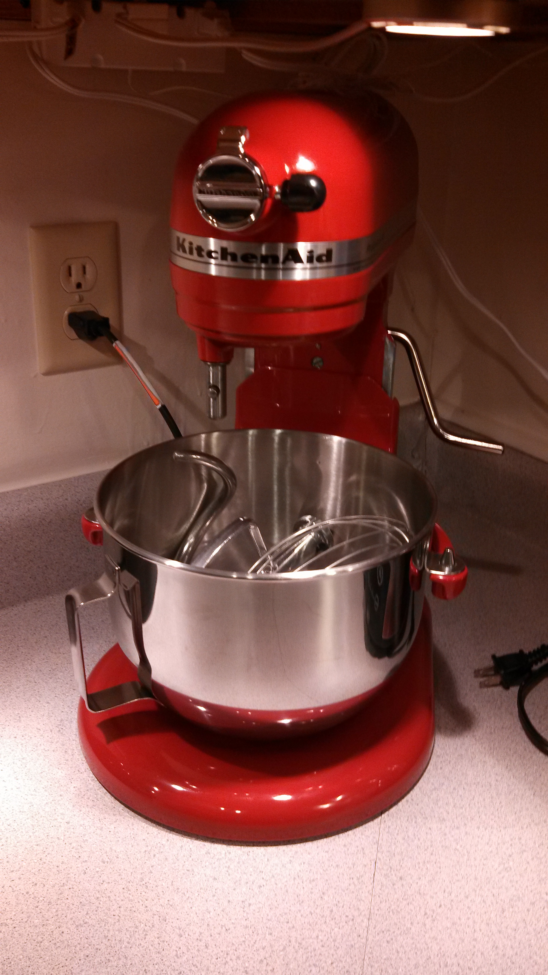 My old Kitchen Aid (bless its heart) was on its last leg, after having come through so many moves it didn’t know what kitchen it was working in any more. It was in a rebellious stage…to express its anger it had resorted to only two speeds….”fast” and “fling”. So you can imagine we’d had many angry discussions during food prep.